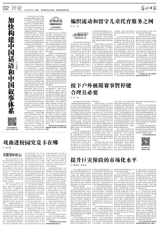 【编者按】巨灾保险既是灾前预防的主要手段,也是灾害应急救援资金的主要筹措渠道之一。我国《十四五规划和2035年远景目标纲要》中明确强调:要继续“完善国家应急管理体系。发展巨灾保险。”近日,我校经济管理学院郭丽楠和袁庆禄老师在《光明日报》发表评论文章,以《提升巨灾保险的市场化水平》为题,探讨了我国当前巨灾保险的属性、现状及未来发展方向。